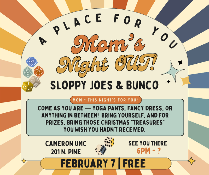 A night out for Cameron UMC moms to meet, relax, connect with other moms, and have fun. We will be hacking parenthood, one conversation at a time!! Please let us know you are coming by clicking here.