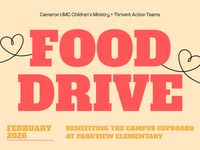 Cameron UMC Children’s Ministry is partnering with Thrivent Action Teams to support The Campus Cupboard at Parkview by collecting food, household goods, and hygiene items.